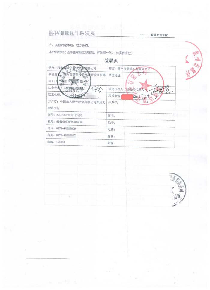 2016年惠州市惠洋實(shí)業(yè)有限公司合作業(yè)績