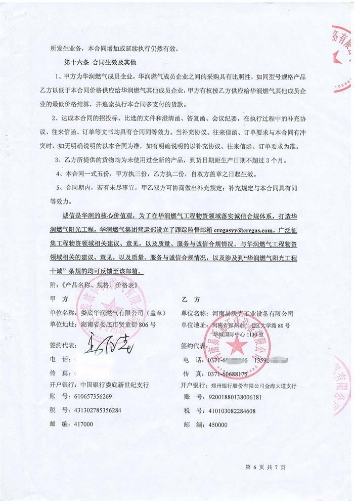 2014年湖南婁底華潤燃氣有限公司合作業(yè)績