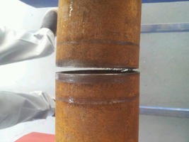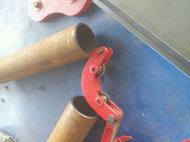 其次進入試用的是我司另一款金屬管切割工具:鉸接式切管機ECH4,本系列產品只需更換刀片便可切割碳鋼、不銹鋼、鑄鐵、球墨鑄鐵等不同材質金屬管件,本次操作切割人員為上饒大通燃氣公司搶修隊伍的一名技術員工,簡單的講解了一下操作規(guī)范,便在100mm鍍鋅管件上開始切割, 一次使用時間為2分46秒完成切割,我們可以看到在管道切割過程中不產生任何的碎屑和火花,切口特別的平整。